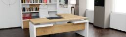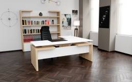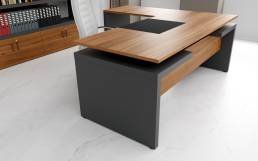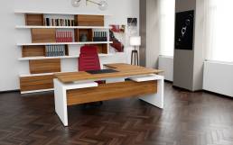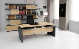 Στο γραφείο διευθυντή – εργασίας Gate, δίνουμε έμφαση στις λιτές ευθείες γραμμές. Επίσης εντάξαμε την τεχνική εναλλαγής στο πάχος του υλικού. Κάτι το οποίο προφέρει στην κατασκευή ιδιαίτερο ύφος. Επίσης προσθέτει κύρος και κομψότητα, ενώ παράλληλα αναδεικνύει και το μοναδικό του design.