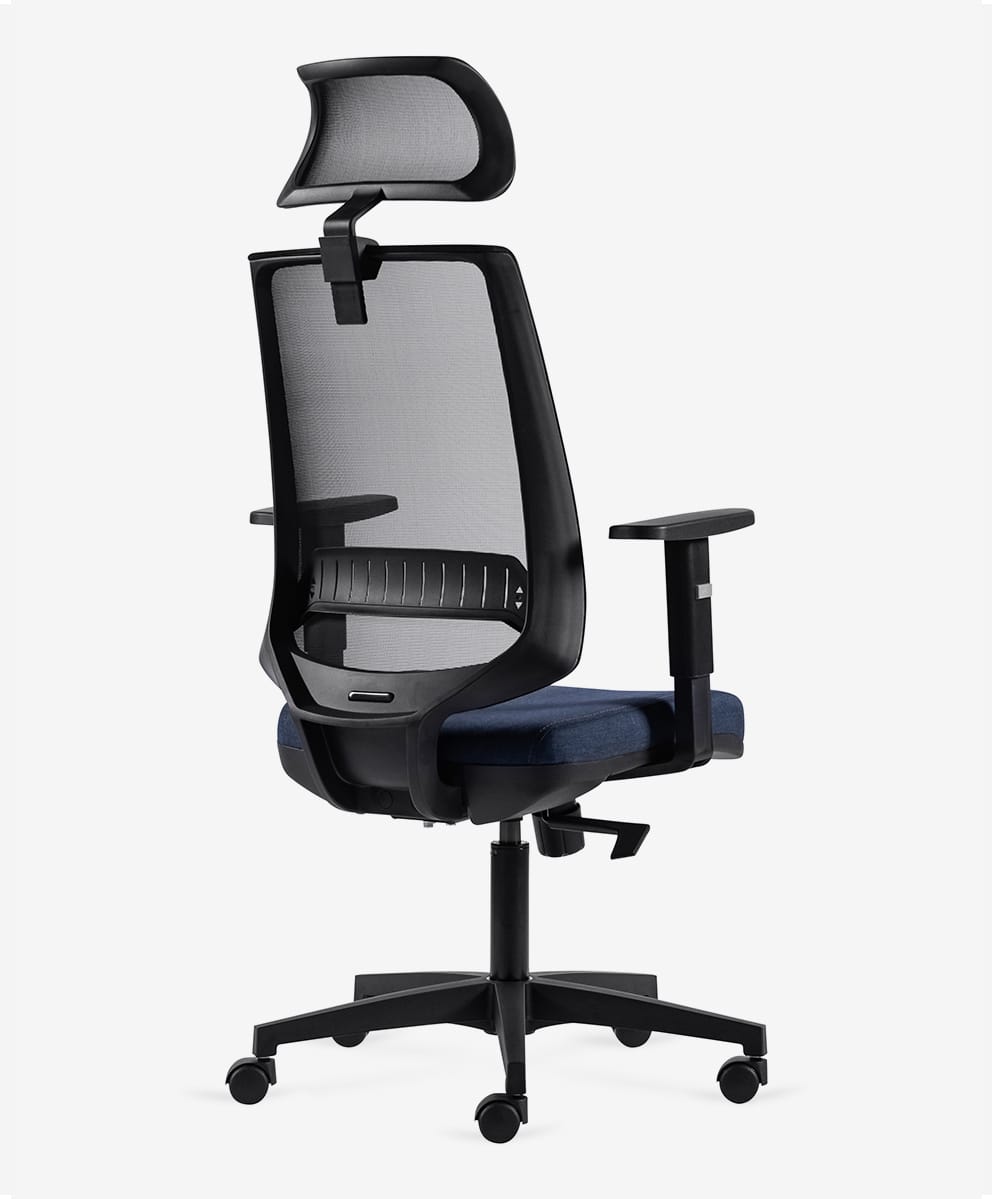 Μοντέρνο και λειτουργικό κάθισμα με δίχτυ στην πλάτη και προσκέφαλο.