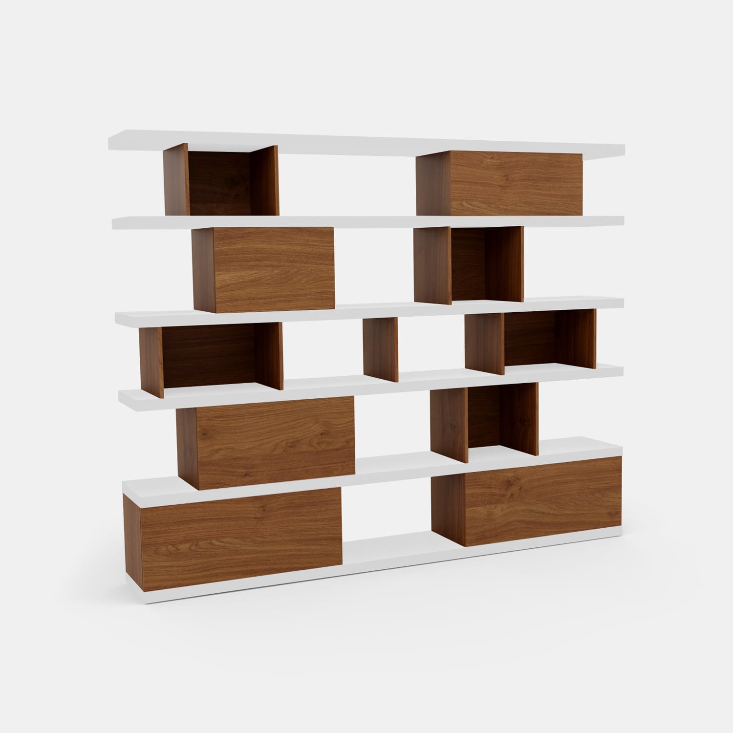 Είναι εξαιρετικής κατασκευής από μοριοσανίδα υψηλής πιέσεως τριών στρώσεων. Χαρακτηρίζεται απο τον μοντέρνο της σχεδιασμό με τα μισά της κουτιά να διαθέτουν καπάκι και τα άλλα μισά να είναι ανοιχτά.