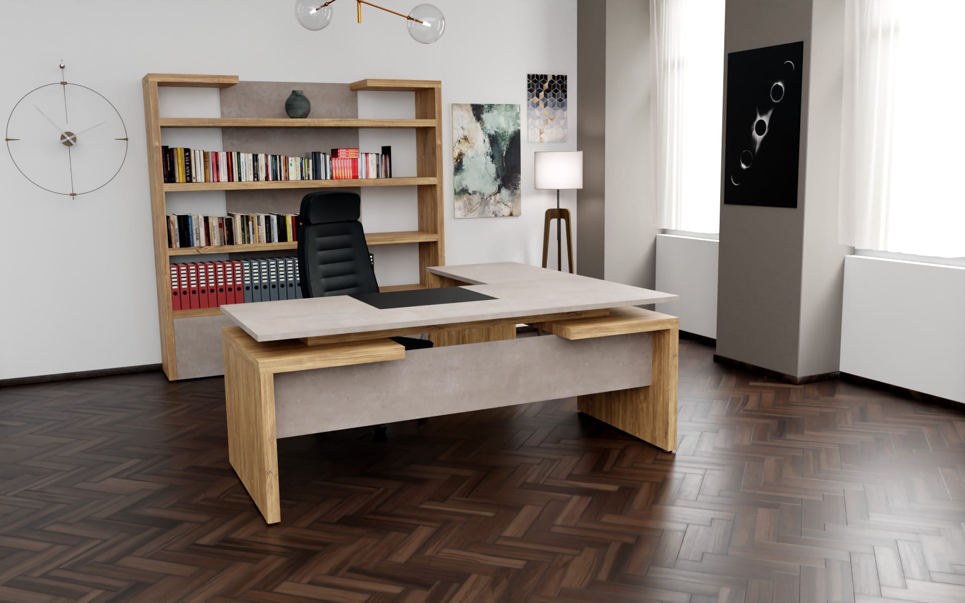 Στο γραφείο διευθυντή – εργασίας Gate, δίνουμε έμφαση στις λιτές ευθείες γραμμές. Επίσης εντάξαμε την τεχνική εναλλαγής στο πάχος του υλικού. Κάτι το οποίο προφέρει στην κατασκευή ιδιαίτερο ύφος. Επίσης προσθέτει κύρος και κομψότητα, ενώ παράλληλα αναδεικνύει και το μοναδικό του design.